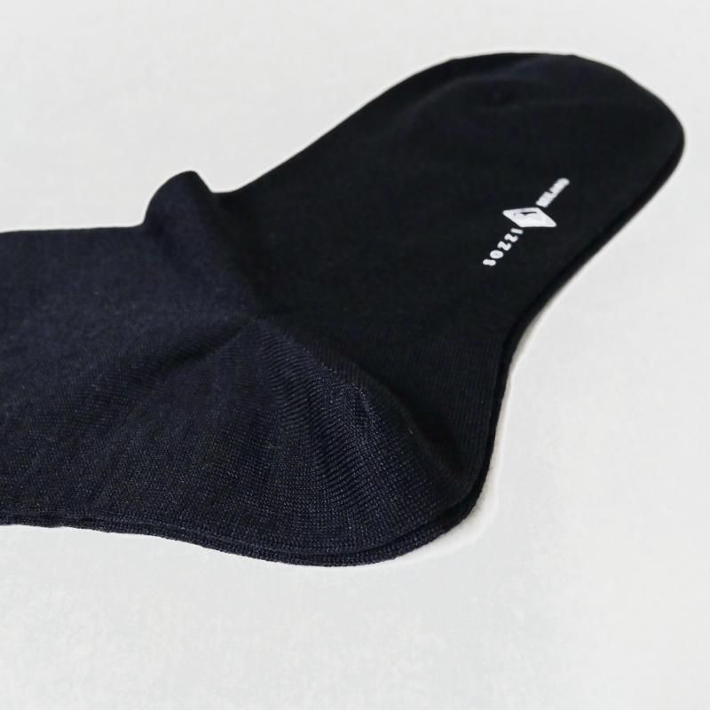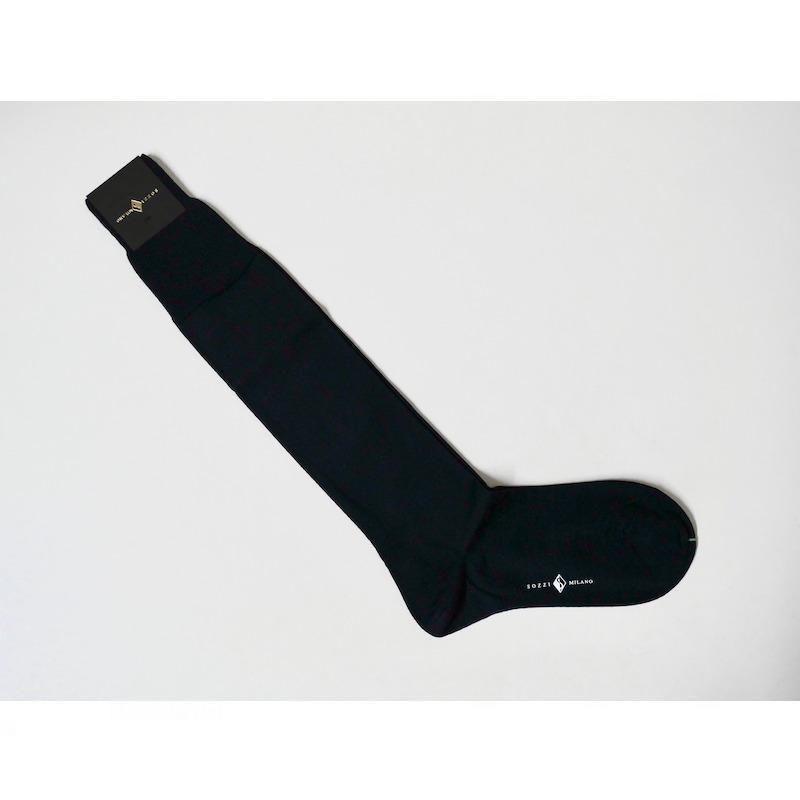 ◆ 1912年創業、ミラノでハンドメイドのソックスを作り始め、現在ではイタリアンクラシックの代表的なソックスブランドとして名を馳せ、イタリアの有名ショップであれば必ずと言ってよいほど、【SOZZI/ソッツィ】のソックスが並んでいると言われています。 クラシックな装いには不可欠なのが、ホーズ。膝下までのロングソックスです。 足を組んだ際、脛を見せるのは失礼なことです。また履き口がたるんで見えるのも見苦しい。足元を見られないためにも美しいホーズを選ぶことが大切です。他にも、むくみや疲れを軽減する効果もあり、保温性も含めると一石三鳥の役割を果たしてくれそうです。 足先から踵、ふくらはぎまで立体裁断による巧みな技術。締め付け感は全くなく、柔らかく吸い付くような、そんな履き心地です。特につま先をハンドリンキングで仕上げることで素晴らしい履き心地とフィット感を実現しています。 素材は、ウール・ナイロン。カラーはネイビーです。