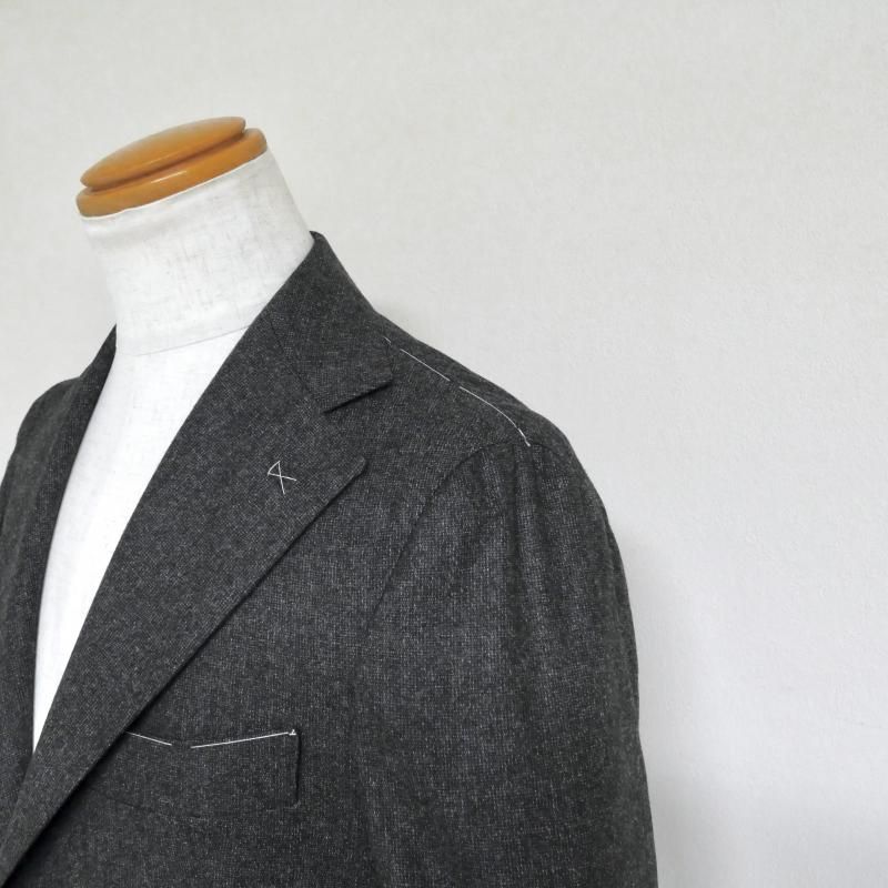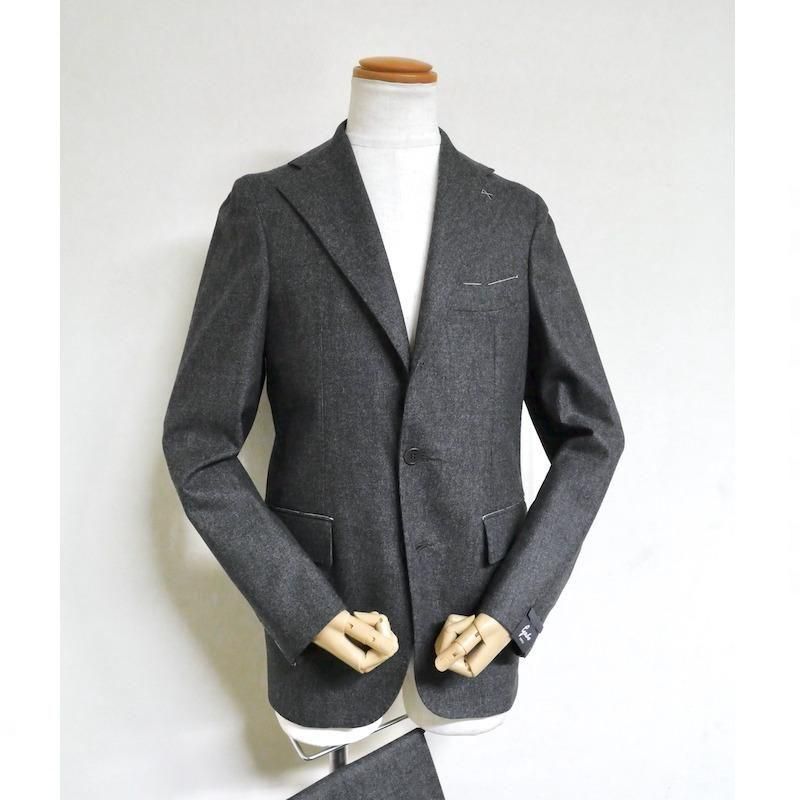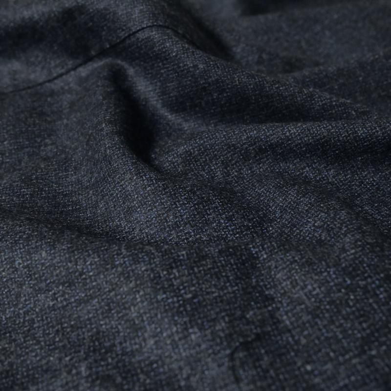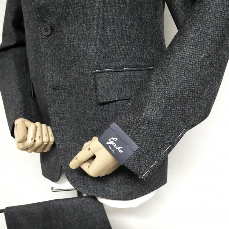 ◆ 1925年、ジュゼッペ・ニコーテラ氏がナポリのサルトの聖地カサルヌオーヴォで創業。その祖父から大きな影響を受けた、現当主でいとこ同士のジャンフランコ氏とジュゼッペ氏が1994年に工場を設立。トップメゾンの下請けとして実績を積んだ後、2013年にプライベートブランドとしてデビューさせたのが【Gabo/ガボ】です。 服の命を決める優れたパーツの数々。目に見えない隠れた部分への細心の配慮。生地の特性を生かしたクラフトマンの技術。一針一針、手縫いで仕上げていくハンドメイドの仕上げ。その一つひとつが良い服を作るための絶対条件。まさにその通りです。 モデルは、いつもと同じ【Gabo/ガボ】の持つパターンに修正を加えたオリジナル。 ウール99に1%のストレッチ素材を入れた杢糸を使ったピンチェック柄スーツです。杢糸とは、二種類以上の異なる糸を撚り合わて作られる糸です。色の濃淡が作り出す深みのある生地感は、どこか懐かしい表情をも作り出します。 ダークグレイは、光の具合によってブラウンがかって見えるかもしれません。ダークブルーは、青みをグッと抑えたシックで奥ゆかしい色のスーツです。