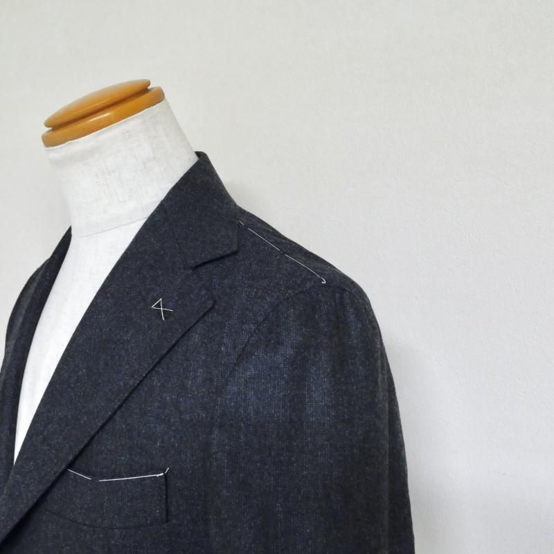 【Errico Formicola】「ANDREA」ヘリンボーン織柄ネイビージャケット