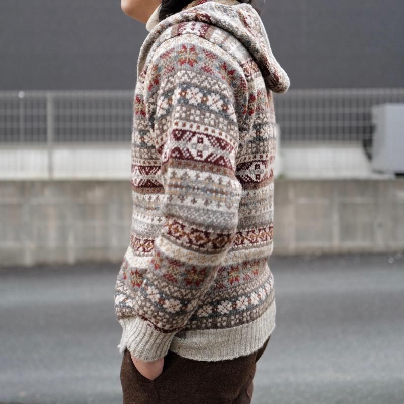 MODEL シェットランドウールフェアアイル柄ニットパーカー