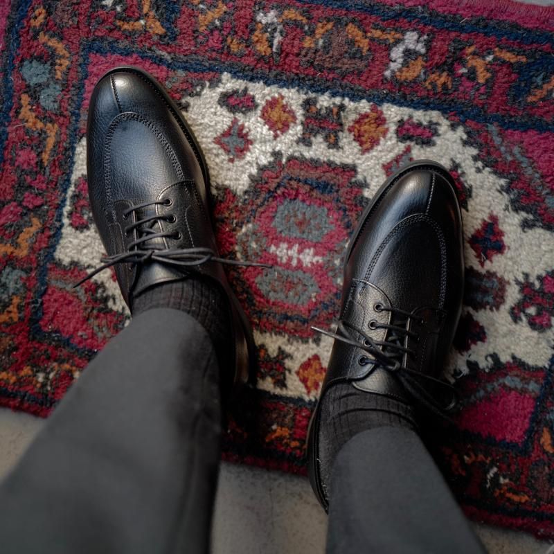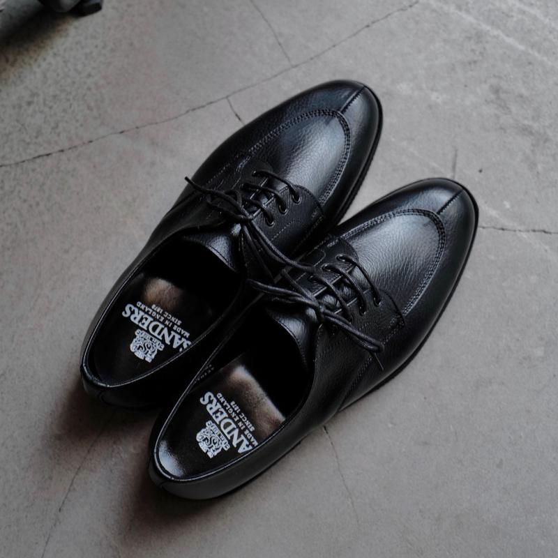 【SANDERS】「Venice」Black Grain Split Toe Uチップグレインレザーシューズ
