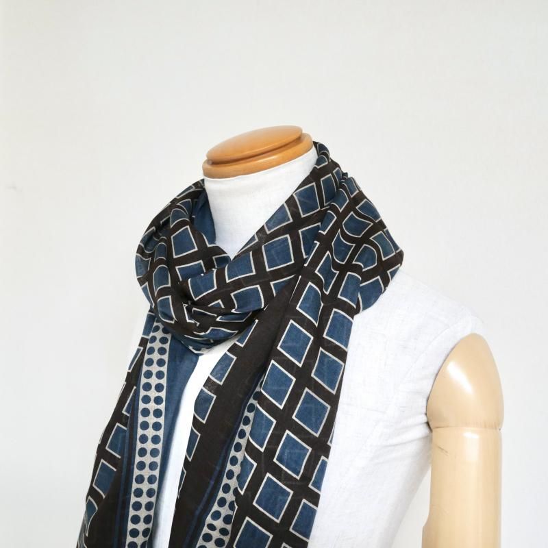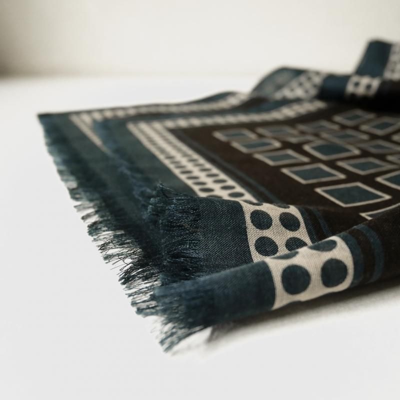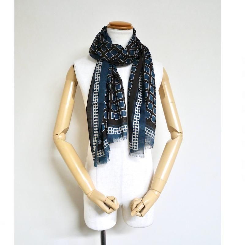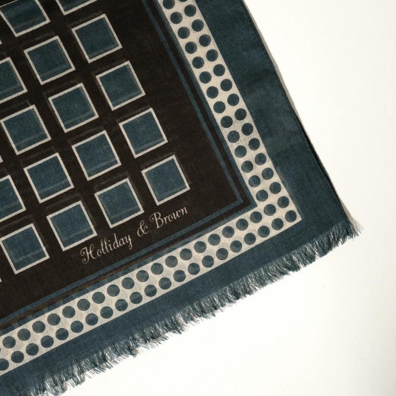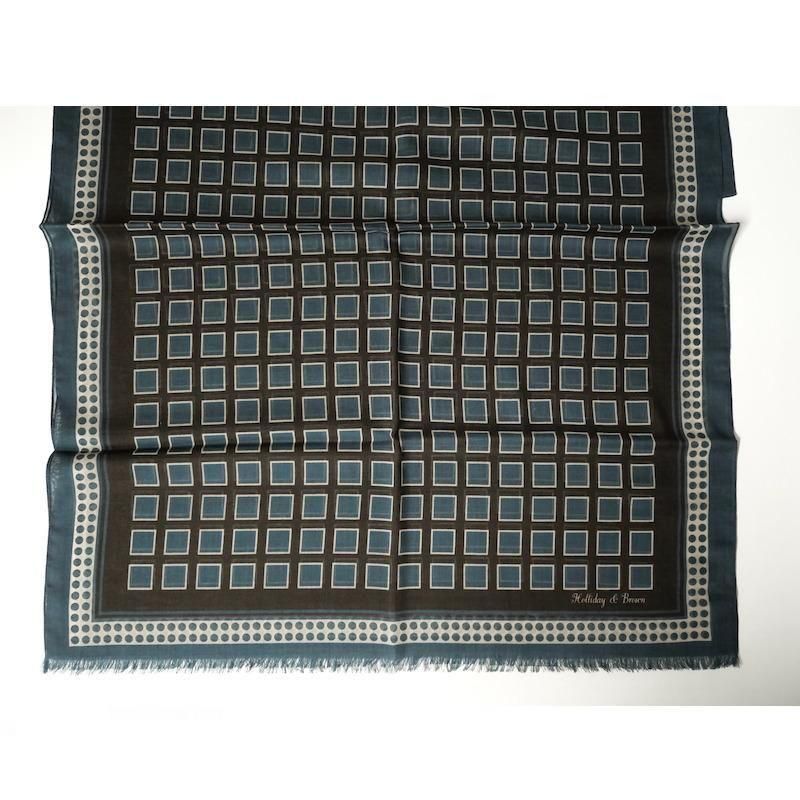 【Holliday&Brown】ウール・シルク スクエア&ドット柄ストール